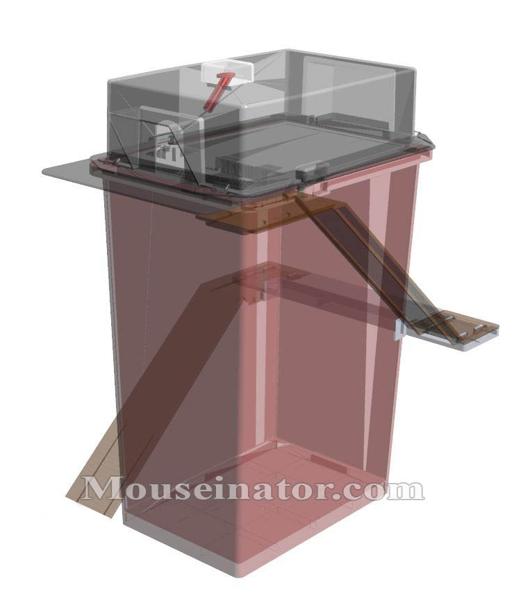 Here is some video of a prototype of the device in action.This is actual recording of the trap working in a real situation and placement during a mouse infestation on a farm in Victoria. Please note trap catches multiple mice at the same time. This particular device has been working for several years and has caught more mice than many kilograms of poison would have disposed of. This apparatus is likely far more cost effective and humane than any other method of capture conceived, requiring only one mechanism where traditional methods might require several applications. The benefits of extremely quick and humane disposal with the additional feature of rodent collection for easy discarding speak for both the environment, ethical treatment of animals and the obvious health benefits. |